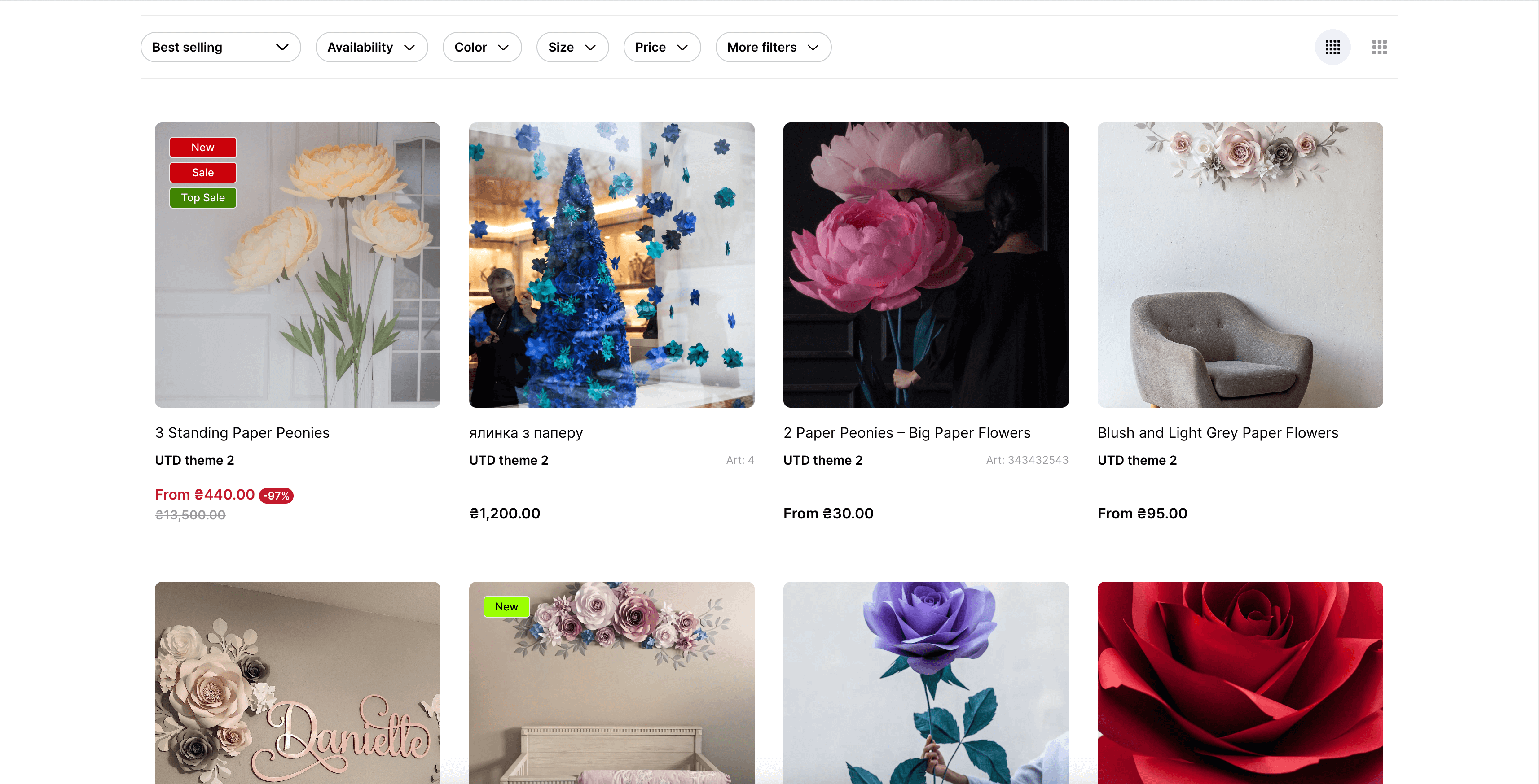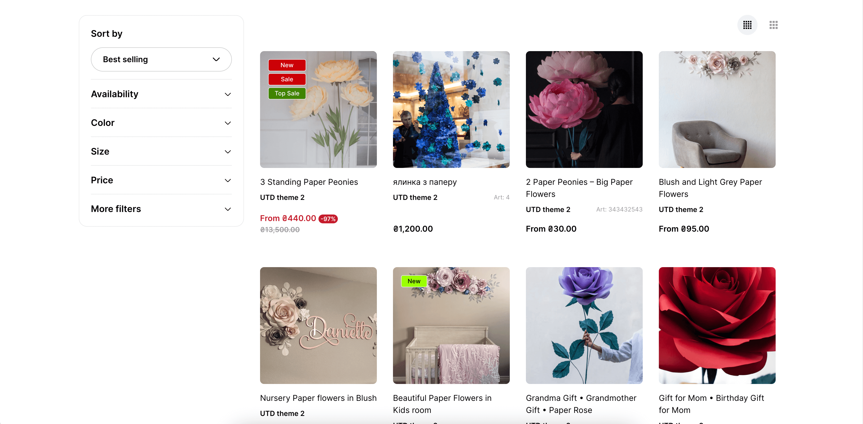On this section (located on the Collection page) customers can see products from the collection. Customers can use filters to show the products they are looking for.