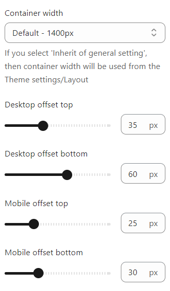 3. **`Desktop offset bottom`** - the **bottom** indent of the section on the **desktop**;
