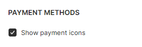 1. **`Show payment icons`** - the checkbox is responsible for displaying icons of payment providers. To manage, go to `settings` → `payments`.