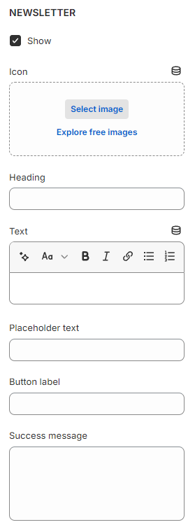 2. **`Icon`** - the setting allows you to set an icon for the newsletter section;