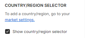 1. **`Show country/region selector`** - the checkbox is responsible for enabling/disabling change of the country (currency). To manage, go to `settings` → `payments`.