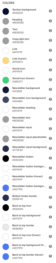 4. **`Copyright text`** - the setting allows you to set the color for text inside **Copyright**;