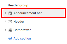 The section is static, it is added initially and cannot be removed. This is done so that the **Announcement bar** in the **DOM** is higher than the **Header**.