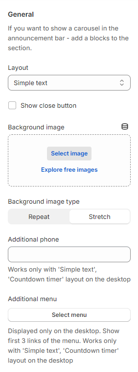 The settings of the **Simple text** and the **Countdown timer** are the same as in the general settings.