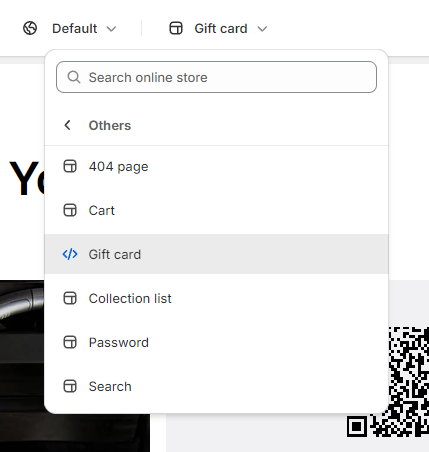 This is a page with a unique template **`gift_card.liquid`**