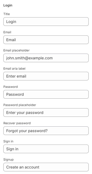4. **`Email aria label`** - setting allows you to select a aria label for the Email input;