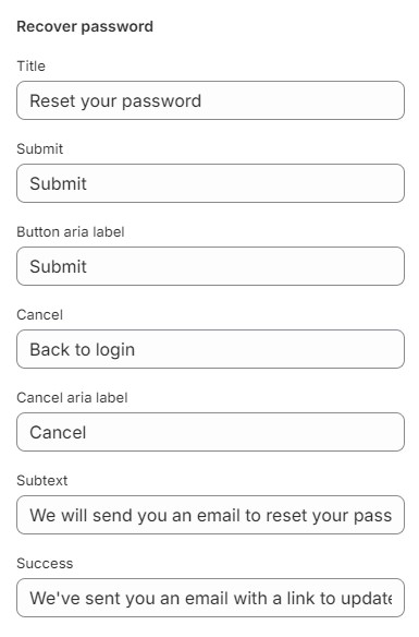 11. **`Recover aria label`** - setting allows you to select a aria label for the Password link;