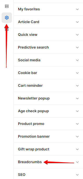 In order to get to the **Breadcrumbs** settings block, you need to go to **`Customizer`** → **`Theme Settings`** → **`Breadcrumbs`**.