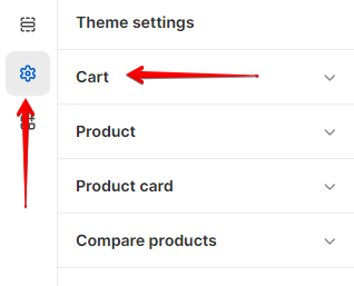 In order to get to the **Cart** settings block, you need to go to **`Customizer`** → **`Theme Settings`** → **`Cart`**.