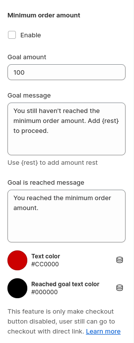 1. **`Enable`** - enable minimum order amount block;