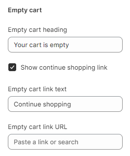 3. **`Empty cart link text`** - link text displayed when the cart is empty;