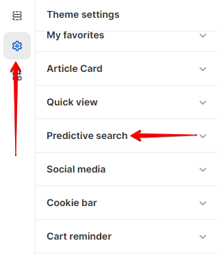 In order to get to the **Predictive search** settings block, you need to go to **`Customizer`** → **`Theme Settings`** → **`Predictive search`**.