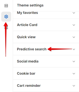 In order to get to the Predictive search settings block, you need to go to Customizer
