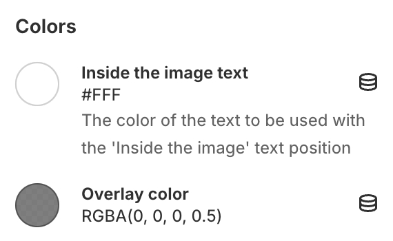 - text color when ‘Text position: Inside the image’ is selected.