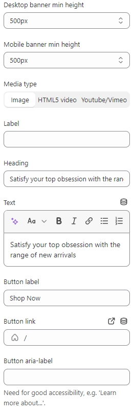 The General Banner section is a versatile promotional tool for your store. You can display a bold banner featuring an image or a video to capture attention and highlight key messages. It’s ideal for showcasing special announcements, new collections, or limited-time offers.