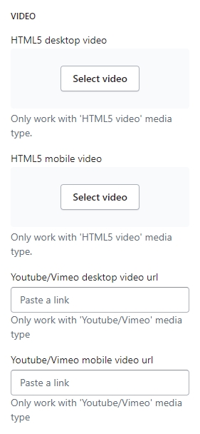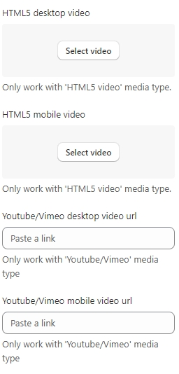 - a field to add an HTML5 Video to be displayed on the Mobile;Youtube/Vimeo Desktop Video Url