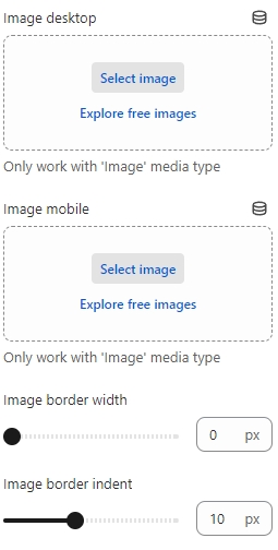 When choosing a media type, you must fill in the appropriate setting, for example, if you have selected the Image type, then below you will find the setting to upload images;