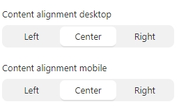 - content position selector within the block on the mobile. Text can have 3 positions:Left