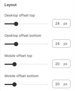 Desktop offset top- the top indent of the section on the desktop;Desktop offset bottom- the bottom indent of the section on the desktop;Mobile offset top- the top indent of the section on the mobile;Mobile offset bottom- the bottom indent of the section on the mobile.
