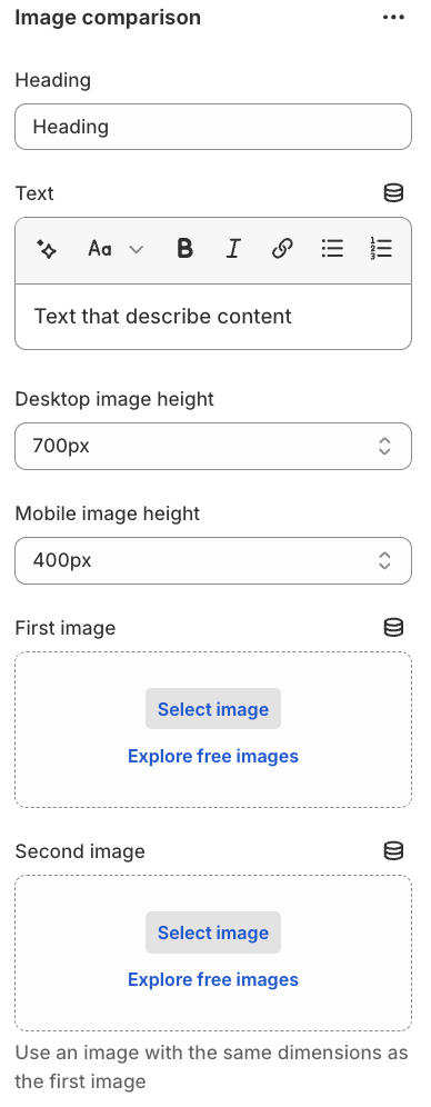 4. **`Second image`** - the image that will be displayed as an "after image”. Use an image with the same dimensions as the first image for the best view of the section;