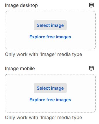 HTML5 desktop video- you can choose a video for your desktop, only work with 'HTML5 video' media type;HTML5 mobile video- you can choose a video for your mobile, by default, there will be a picture from the desktop, only work with 'HTML5 video' media type;Youtube/Vimeo desktop video url- you can set YouTube/Vimeo video URL for desktop, only work with "YouTube/Vimeo video" media type;Youtube/Vimeo mobile video url- you can set YouTube/Vimeo video URL for mobile, by default, there will be a picture from the desktop, only work with "YouTube/Vimeo video" media type;