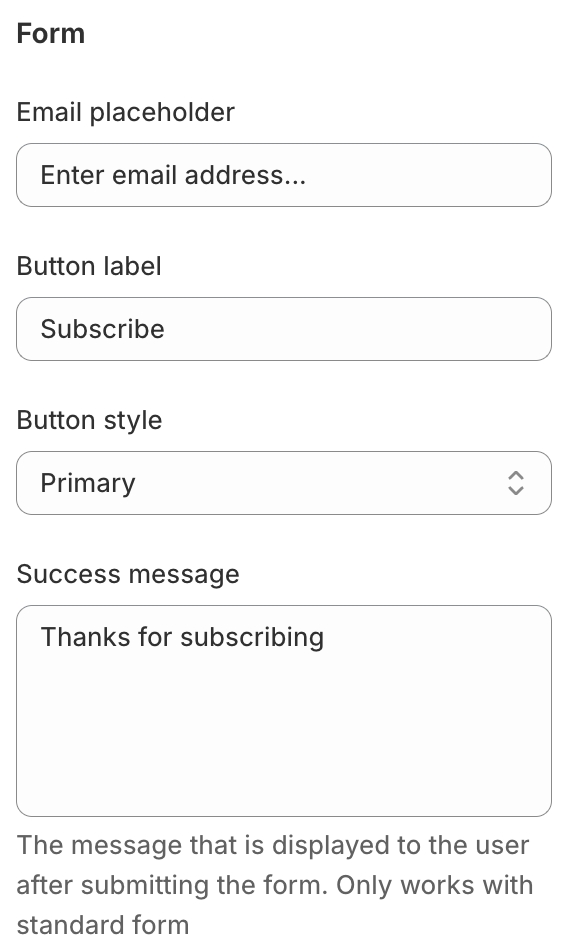 - you can set the default text for the email placeholder;Button label