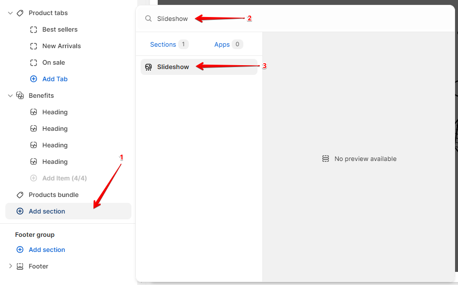 In order to add a section, you need to go to Customizer → Add Section → Slideshow.