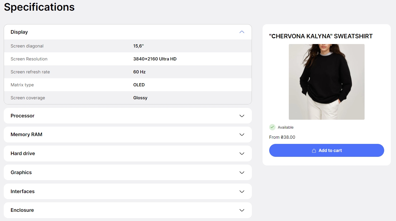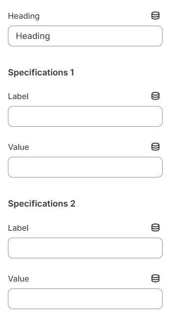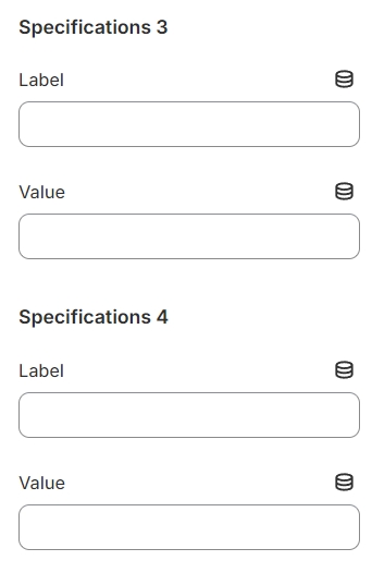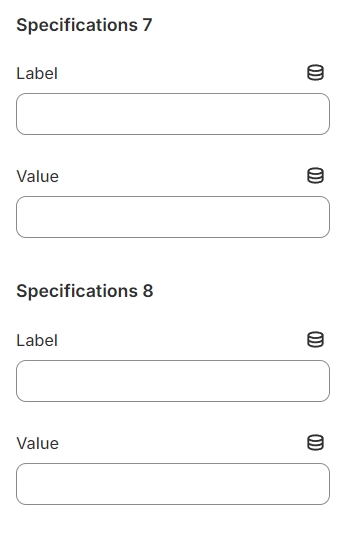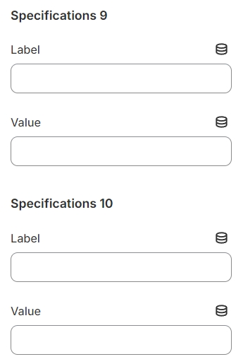 The block has settings, label, values with which you can specify up to 10 specifications