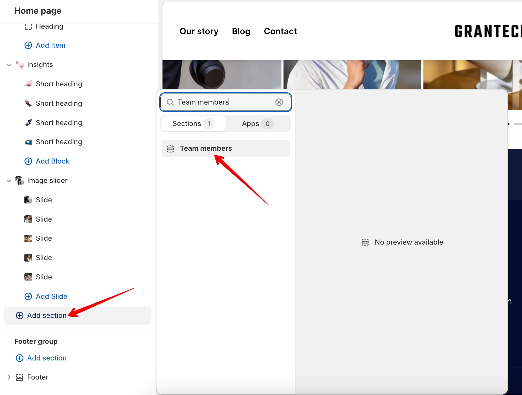 In order to add a section, you need to go to Customizer → Add Section → Team members.