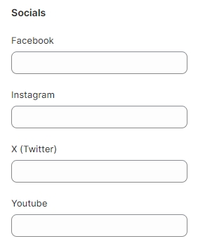 Facebook- the setting allows you to set a link to Facebook;Instagram- the setting allows you to set a link to Instagram;Twitter- the setting allows you to set a link to Twitter;YouTube- the setting allows you to set a link to YouTube.