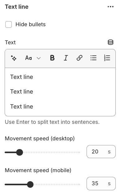 2. **`Text`** - setting allows you to fill in the text content for the section. Use Enter to split the text into sentences;