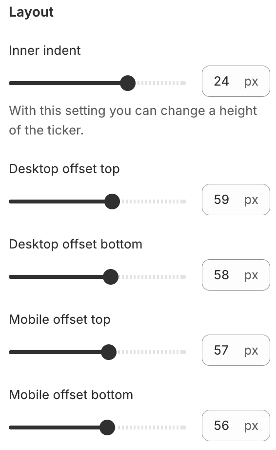 3. **`Movement speed (desktop)`** - setting allows you to set the speed of the ticker for the **Desktop**;