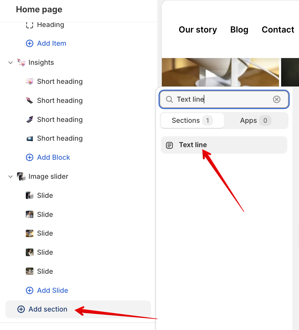 In order to add a section, you need to go to **`Customizer`** → **`Add Section`** → **`Text line`**.