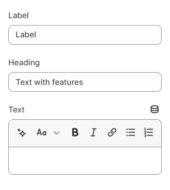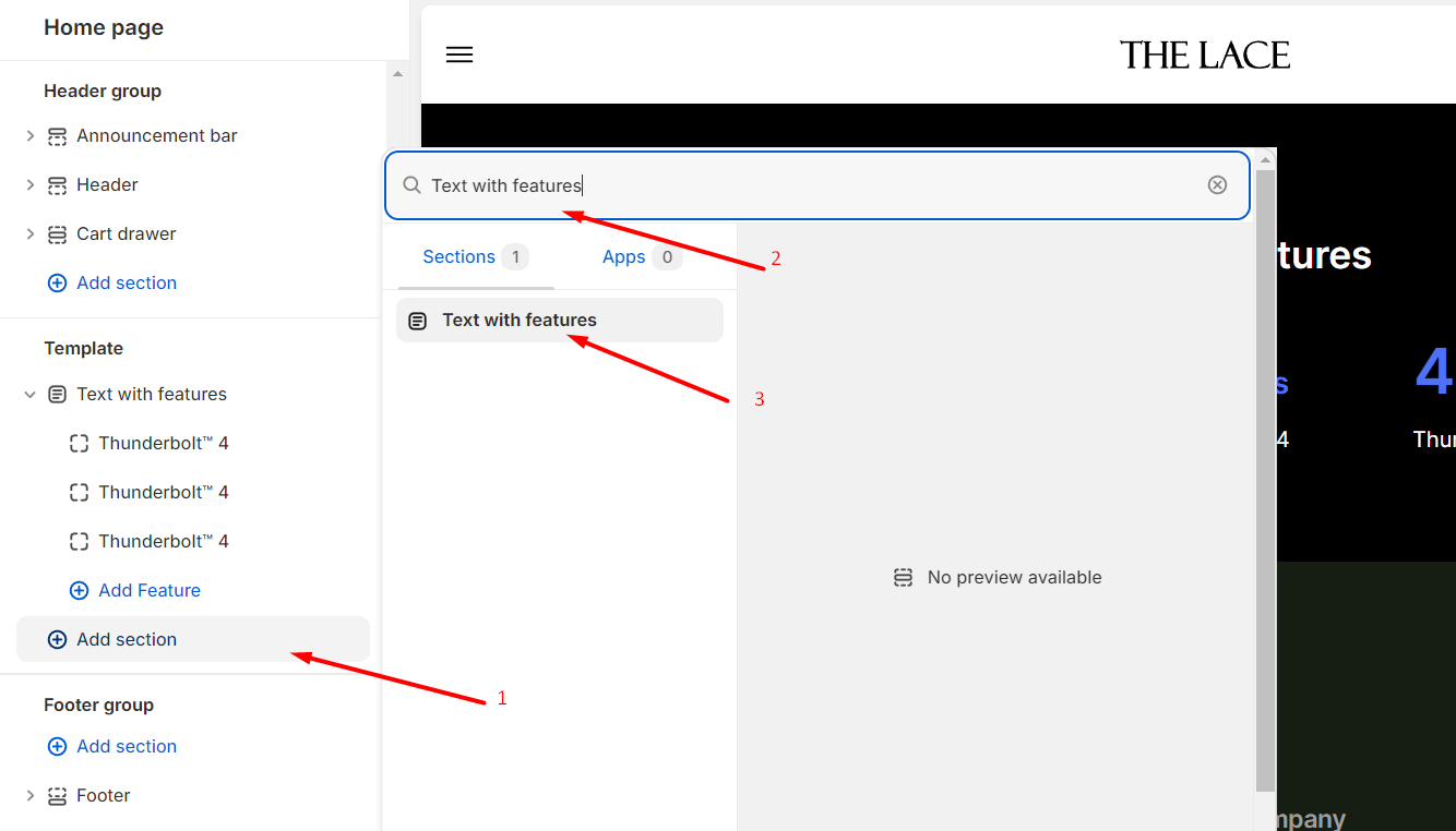 **`Customizer`** → **`Add Section`** → **`Text with features`**.