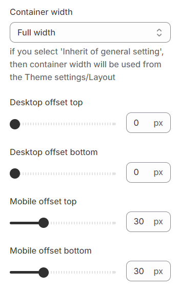 4. **`Mobile offset top`** - the **top** indent of the section on the **mobile**;