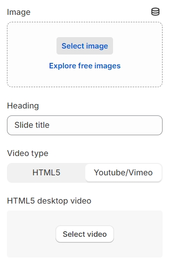 - You can select a video for your mobile device, if no video is selected, the desktop video will be displayed;Youtube/Vimeo desktop video url
