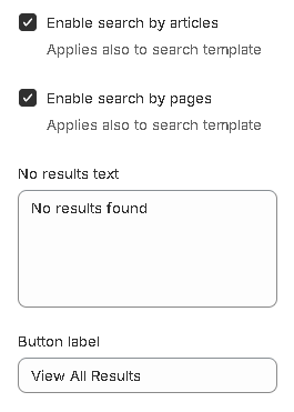1. **`Enable search by articles`** - setting allows to include articles in the search;