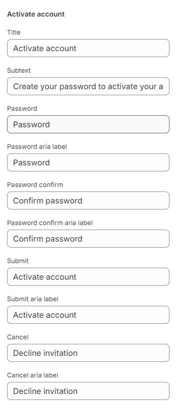 6. **`Password confirm aria label`** - setting allows you to select a aria label for the Password confirm input;
