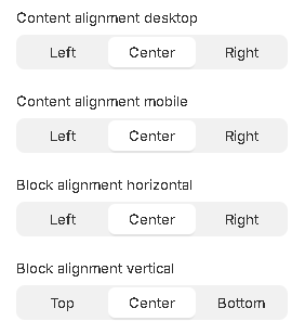 2. **`Content alignment mobile`** - content position selector within the block on the mobile. Text can have 3 positions: