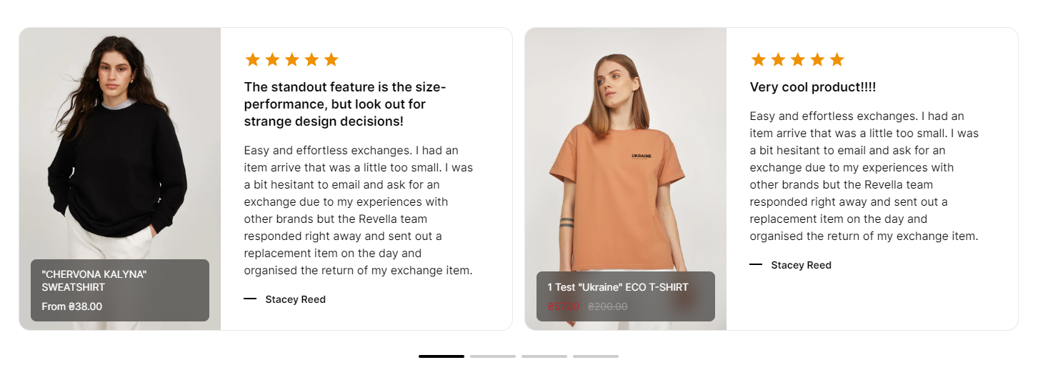 In this section, you can add overviews for your store or products. You can choose one of 2 layouts for the reviews: Base, Big product.