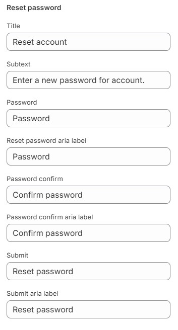 6. **`Password confirm aria label`** - setting allows you to select a aria label for the Password confirm input;